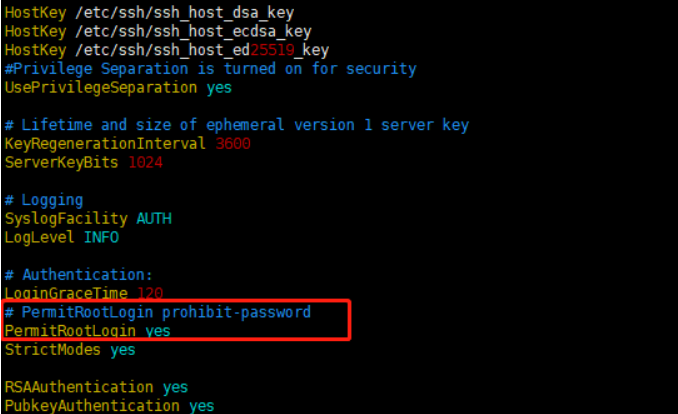 PermitRootLogin prohibit-password  → PermitRootLogin yes