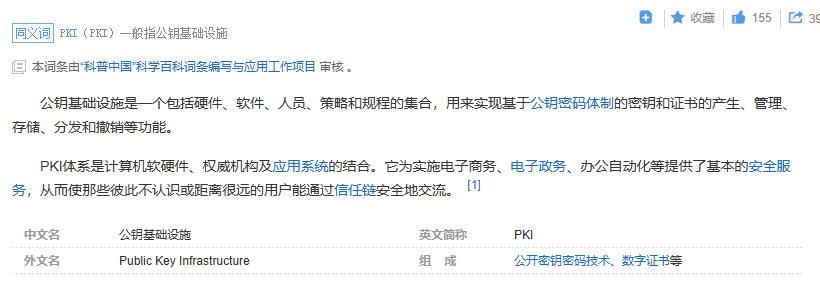 一个典型的PKI系统包括PKI策略、软硬件系统、证书机构CA、注册机构RA、证书发布系统和PKI应用等。PKI安全策略建立和定义了一个组织信息安全方面的指导方针,同时也定义了密码系统使用的处理方法和原则。它包括一个组织怎样处理密钥和有价值的信息,根据风险的级别定义安全控制的级别。